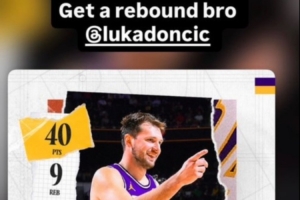 赛后,队友拉拉维亚转发了东契奇本场数据海报,并且写道:“兄弟,再抢个篮板吧。”
