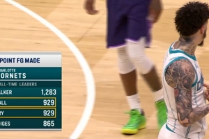 (肯巴·沃克1283记三分黄蜂队史最高)
