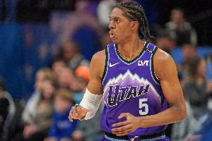 爵士球员科迪·威廉姆斯本场比赛表现不错,不仅在进攻端打出高效率,还展现出不错的冲击力。