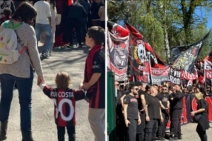 4000名或许更多戴着红黑围巾、身着莱奥、鲁伊·科斯塔、马尔蒂尼和莫德里奇球衣的球迷们涌向米兰基地。南看台挥舞着旗帜,擂响战鼓。在对阵那不勒斯赛前两天,米兰球迷们涌向米兰内洛观看球队训练。这场景宛如集训首日,气温虽然还没到7月那种程度,但也足以向春天致敬。画面令人震撼,米兰显然备受鼓舞:以队长迈尼昂为首,球员们走向米兰内洛入口的小径与看台球迷会面。歌声、掌声交织,仿佛回到了90年代,或者是2022年皮奥利夺冠时的盛况。