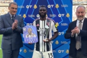 4场打进3球!尤文前锋博加在赛前领取意甲3月最佳球员奖杯