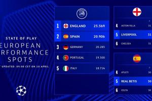 体育资讯04月10日讯 欧足联官方今日发布文章,英超已经确定获得下赛季的一个额外欧冠名额,下赛季英超至少有5队能够参加欧冠。目前西甲德甲还将竞争剩下的一个额外欧冠名额。